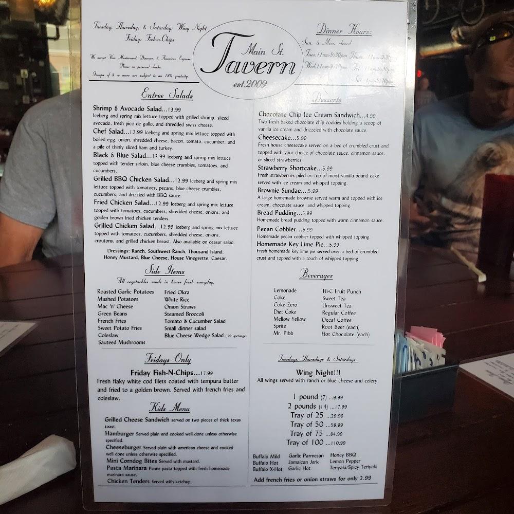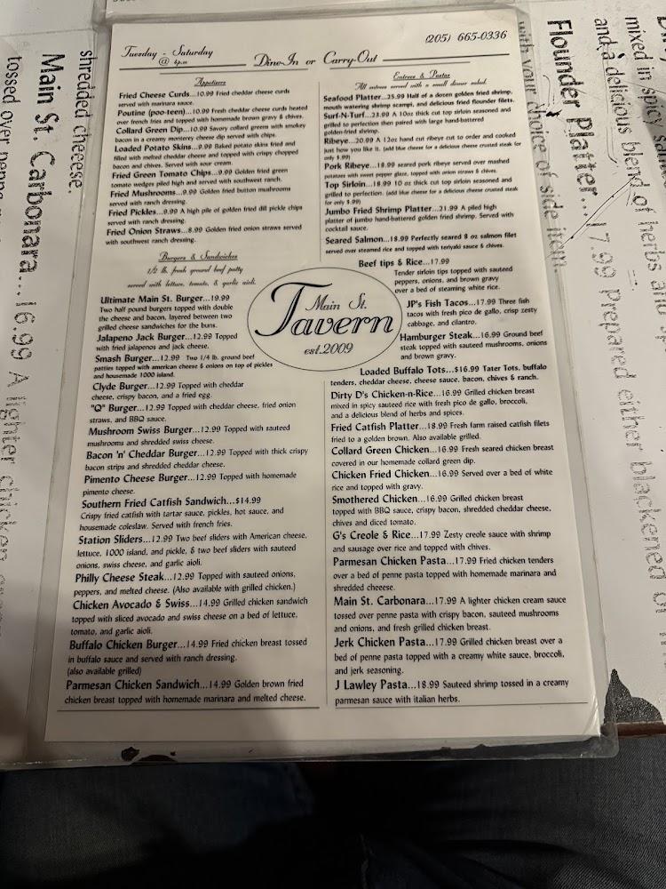 Welcome to Main Street Tavern, a beloved family-owned restaurant located in the heart of Montevallo, AL, since 2009. With a warm, family-friendly atmosphere, we offer a diverse menu featuring local specialties, excellent cocktails, and a wide selection of beers and wines. Enjoy your meals on our spacious terrace or opt for delivery and takeout services. Ideal for lunch, dinner, or a casual solo dining experience, we pride ourselves on quick service and accessible seating for all. Join us for happy hour and discover why we're a favorite spot for food lovers! Visit us at 710 N Boundary St.
